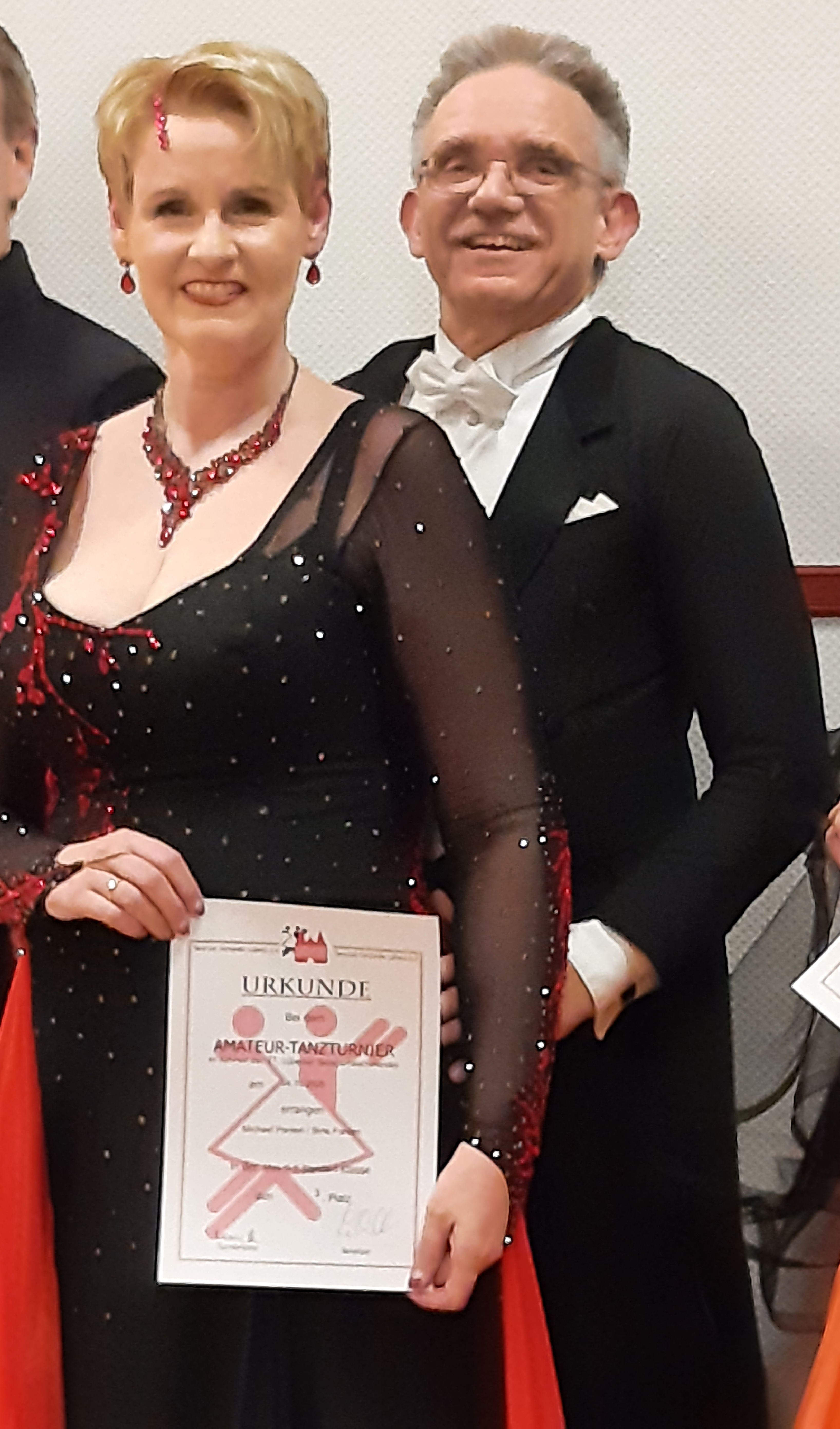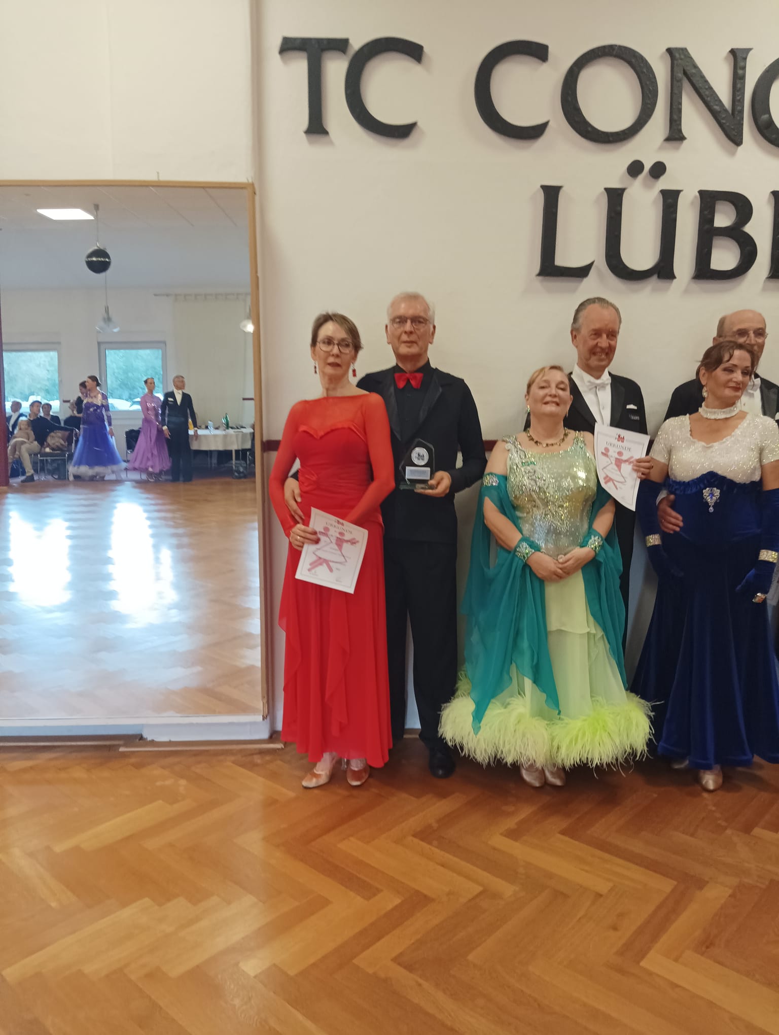 Da verdeckt gewertet wurde, blieb das Ergebnis bis zur Siegerehrung spannend. Schließlich verkündete der Turnierleiter die Platzierungen – und rief Michael und Birte Panten auf den 3. Platz. Die Freude war riesig, denn dieser dritte Platz bedeutete gleichzeitig den Aufstieg in die Master III A-Klasse. Heinz-Joachim und Ulrike starteten in der Master IV B-Klasse. Mit einer starken Präsentationsrunde und einer hervorragenden Endrunde sicherten sie sich den Turniersieg. Anschließend tanzten sie in der Master IV A mit und kamen auch hier in die Endrunde.