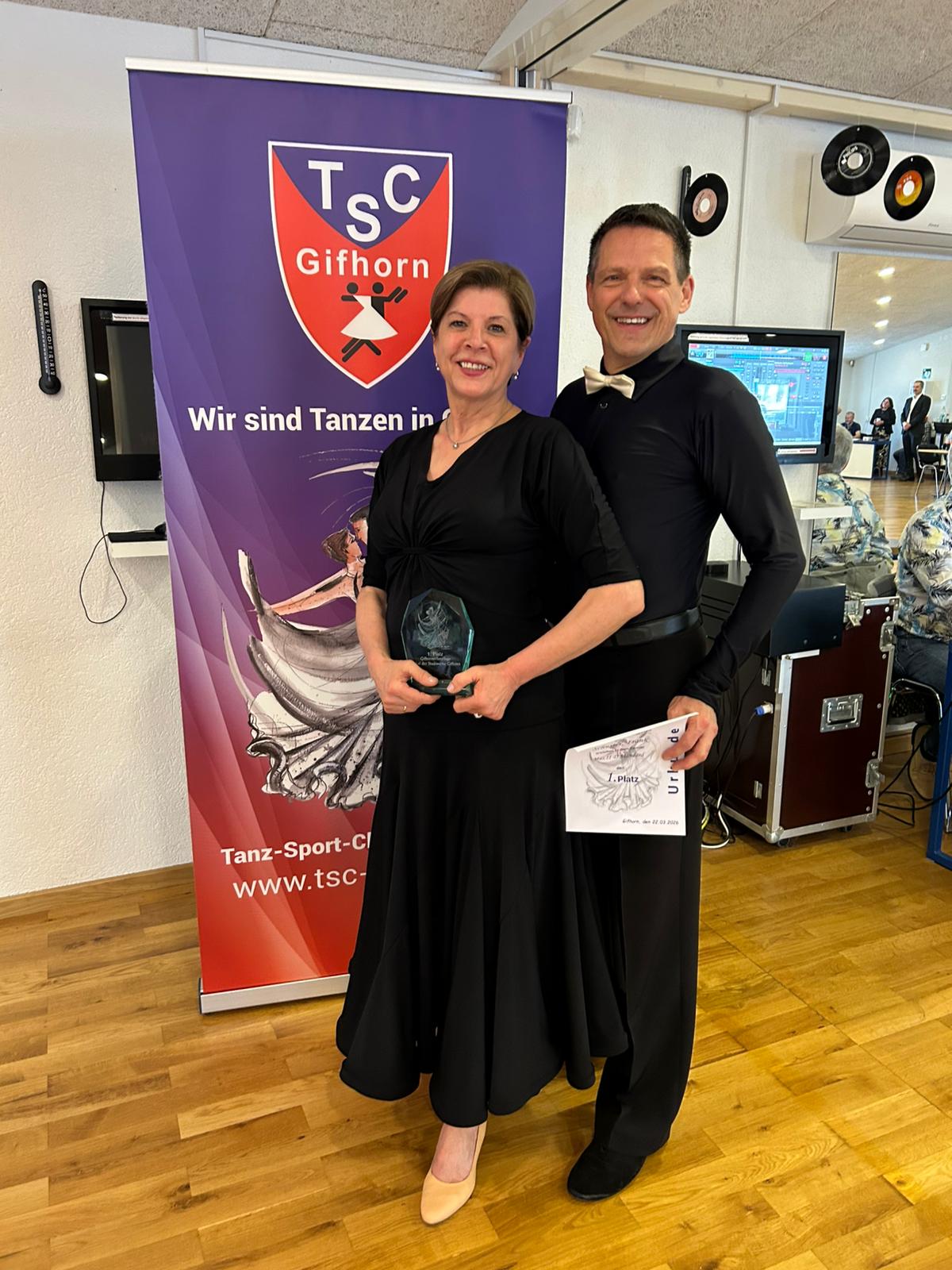Am Wochenende 21./22. März 2026 waren Frank und Regina in Gifhorn und tanzten Tanzturniere in der III D und II D Standard. Am ersten belegten sie einen sehr guten 4. Platz in der Senioren III D-Klasse. Am Sonntag steigerten sich Frank und Regina noch einmal und belegten ein sehr guten 2. Platz. In der II D-Klasse konnten die Beiden den Turniersieg erringen.